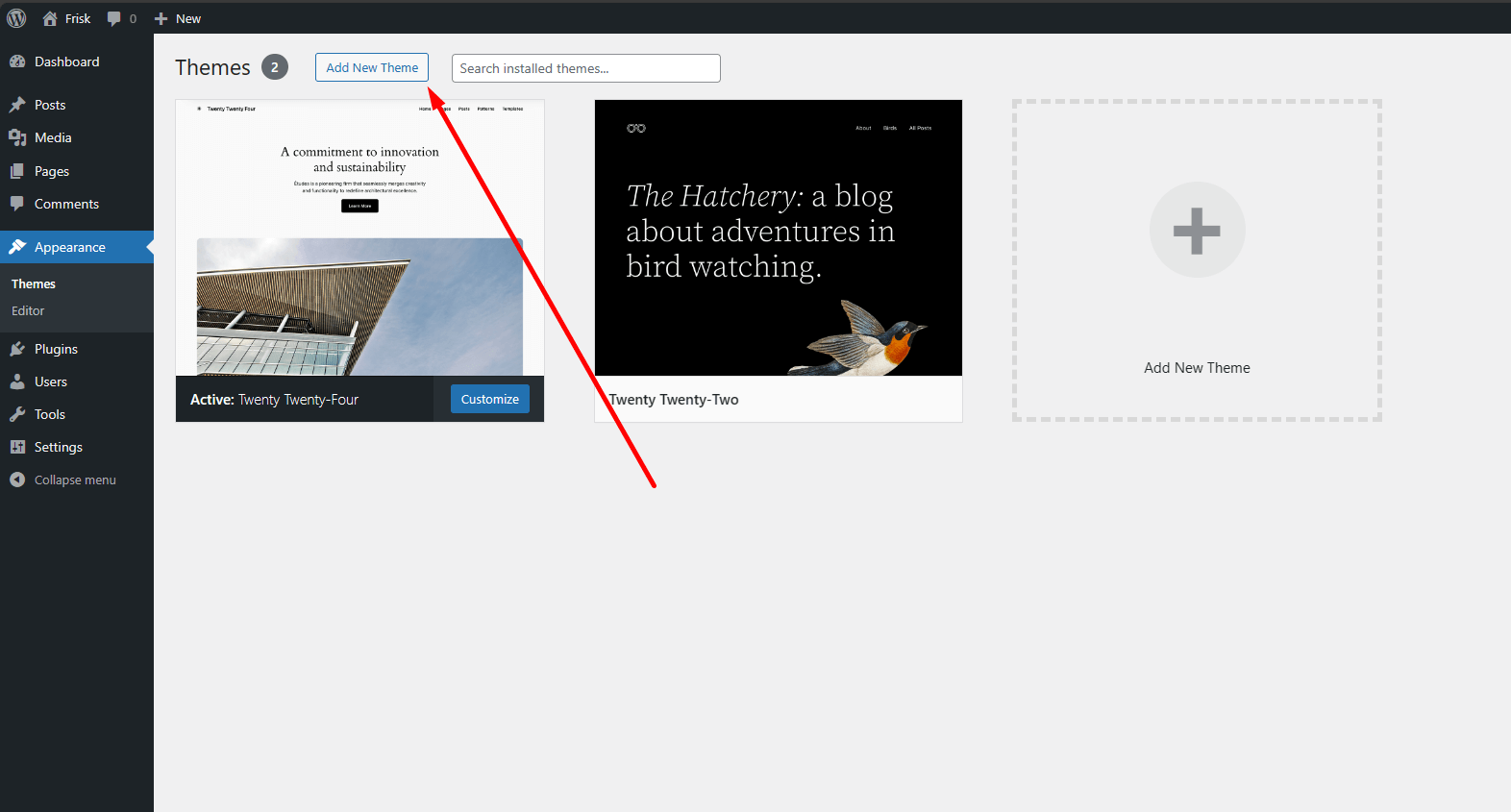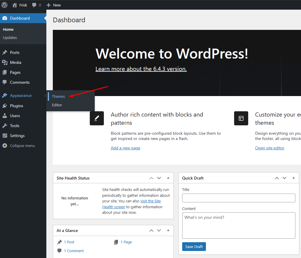 4. Navigate to Appearance > Themes.
